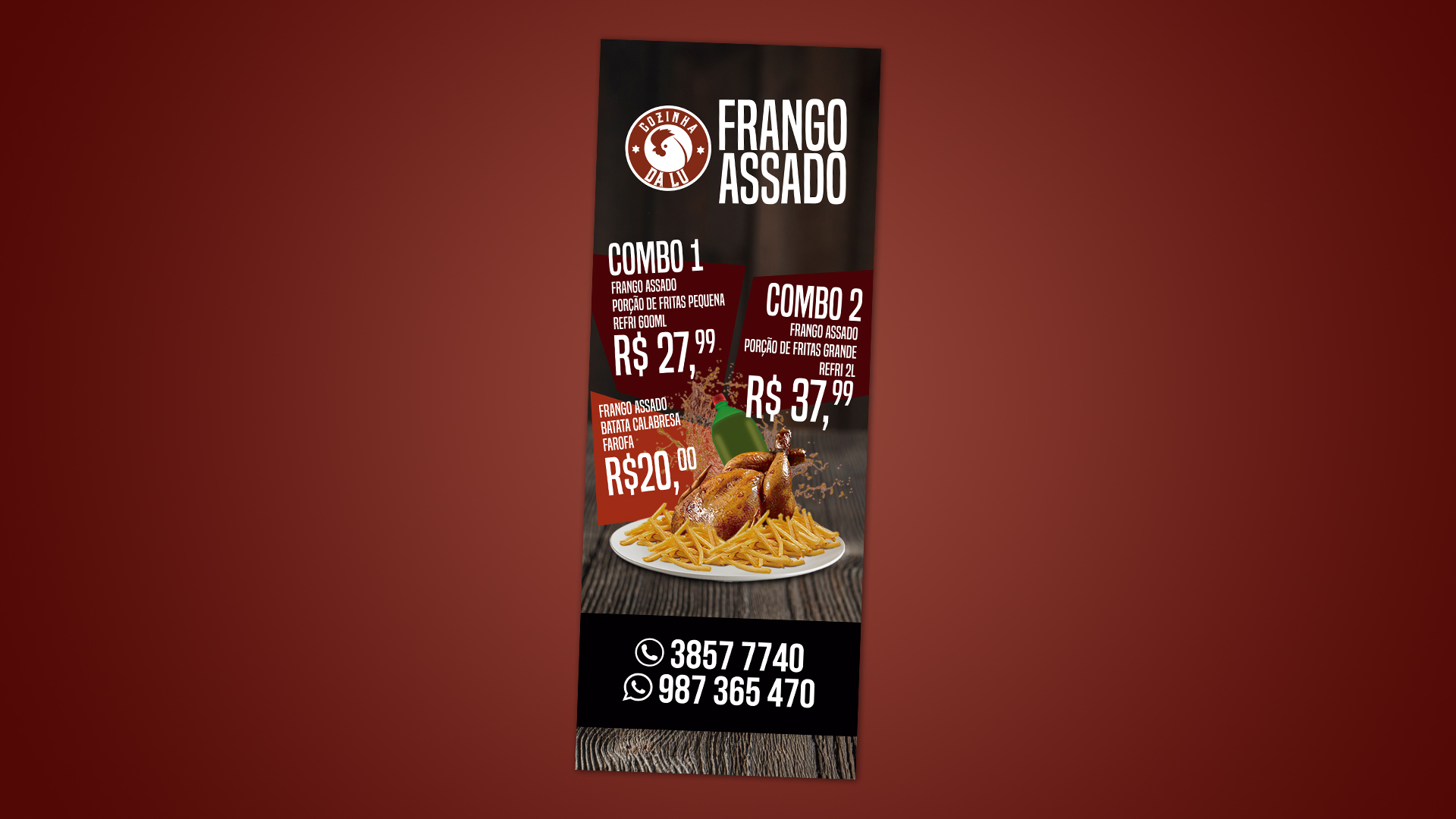 Material desenvolvido para campanha de divulgação de produtos para o estabelecimento do ramo alimentício Cozinha da Lu, sendo estes dois produtos: um Folheto, frente e verso colorido e um banner vertical.