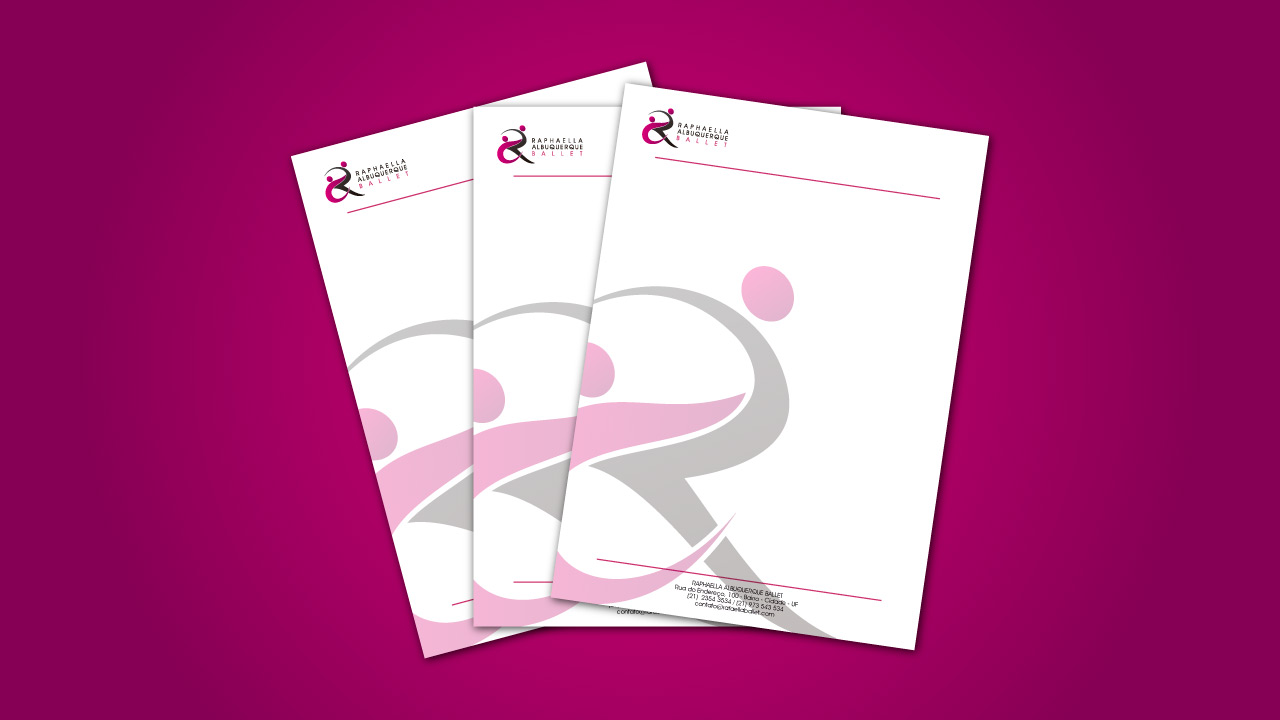 Redesign de logo para a professora de ballet Raphaella Albuquerque, o conceito foi reaproveitado, com o objetivo de otimizar aplicações foi feito uso de curvas arrojadas, aplicando traços modernos, aliados ao uso de cores em degradê e fontes bem definidas e modernas. O objetivo foi alcançado com sucesso.